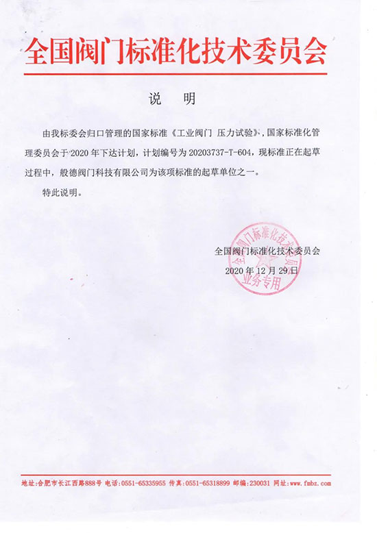 圖|般德閥門是《工業閥門 壓力試驗》標準的起草單位之一