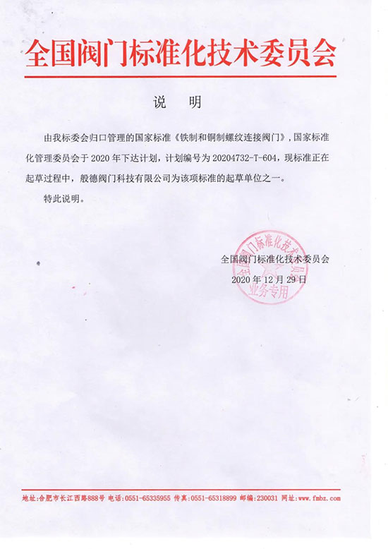 圖|般德閥門是《鐵制和銅制螺紋連接閥門》標準的起草單位之一