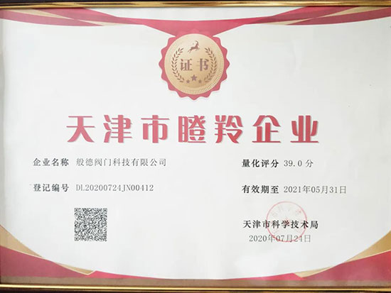 般德閥門榮獲“天津市瞪羚企業”。