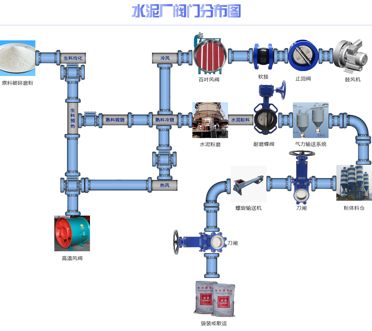 而在水泥生產管線中,閥門的使用在整個生產過程起到了很重要的作用,在正確的地方合理的使用閥門,能夠保證整個水泥生產管線的順暢工作。